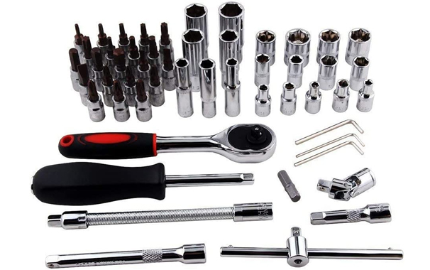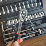 Un set de instrumente ar trebui să fie în arsenalul oricărui om. Acesta vine cu un clichet, o șurubelniță și o varietate de biți și mufe diferite. Setul conține o cutie de depozitare rezistentă, ceea ce ușurează transportul instrumentelor.